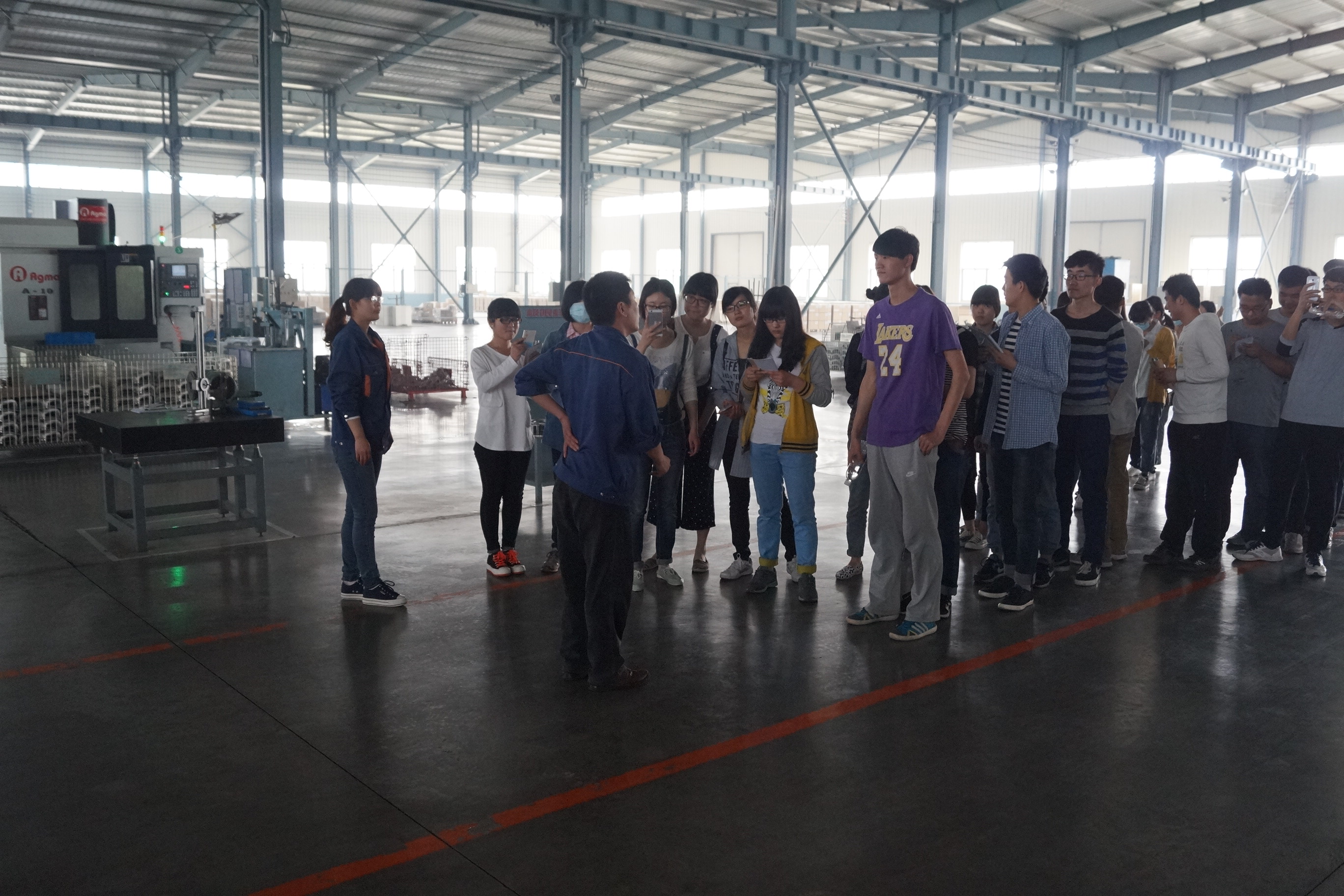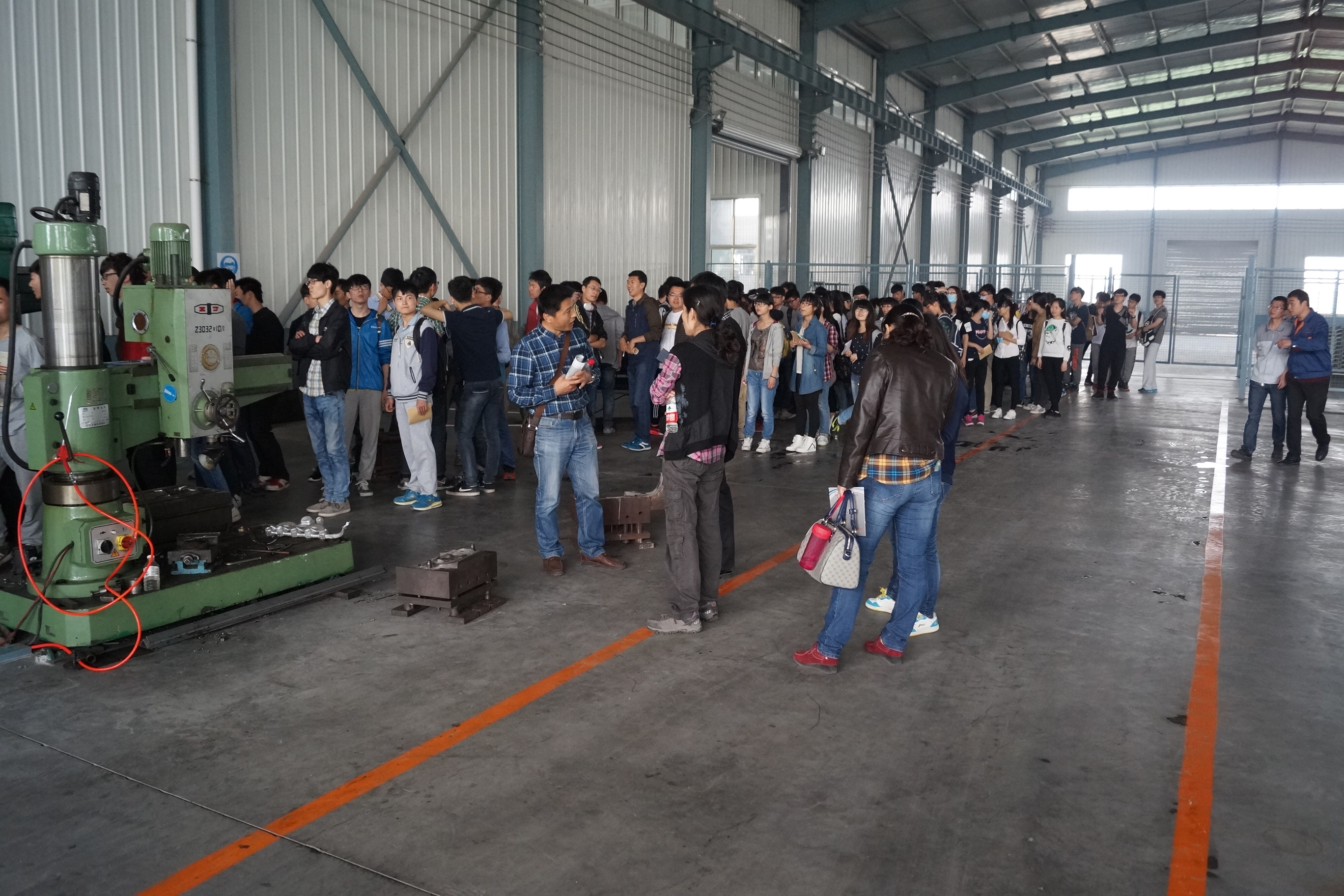 2015年4月24日,濟(jì)南大學(xué)材料學(xué)院160多名大二學(xué)生在6名老師的帶領(lǐng)下來我公司參觀、見習(xí),從鑄造車間開始,公司技術(shù)人員對(duì)學(xué)生講解了關(guān)于產(chǎn)品的生產(chǎn)流程、工藝標(biāo)準(zhǔn),澆鑄機(jī)、壓鑄機(jī)的操作要求,介紹了工裝模具制修室的機(jī)床,機(jī)加工車間的數(shù)控車、加工中心的使用要求等 ,并且學(xué)生們對(duì)現(xiàn)場(chǎng)參觀提出了自己的問題。
